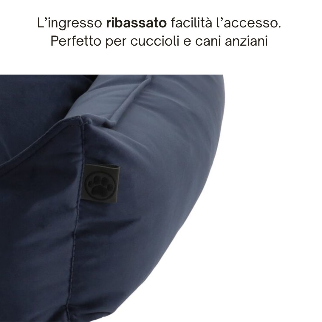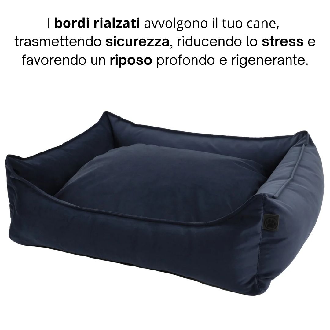 I bordi alti e imbottiti avvolgono il corpo del cane, creando una sensazione di rifugio che riduce lo stress e favorisce il rilassamento. Questa caratteristica è particolarmente apprezzata dai cani che amano sentirsi contenuti e protetti durante il riposo.