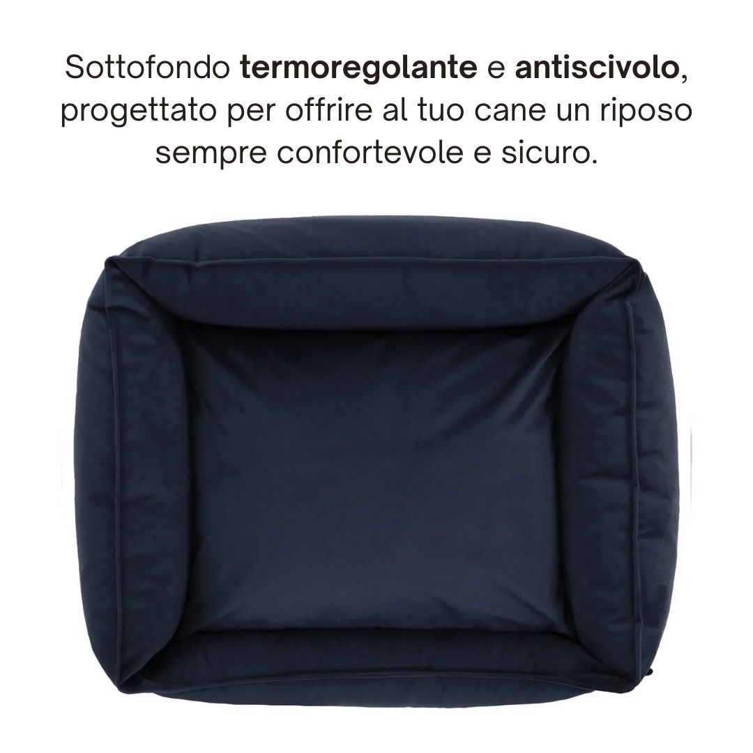 Il fondo antiscivolo assicura che il letto resti sempre fermo, anche su pavimenti lisci, offrendo al cane una sensazione costante di sicurezza.