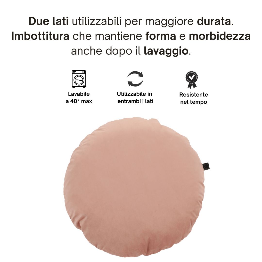 Il Cuscino per cani rotondo pillow Rose Dust offre una superficie morbida e accogliente che favorisce il rilassamento muscolare e il benessere quotidiano, garantendo un riposo naturale e confortevole.