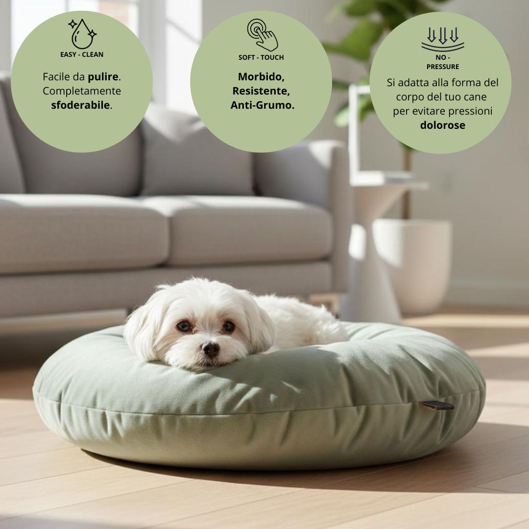 Cuscino per cani rotondo pillow Soft Green – Comfort, Relax e Benessere 🐾