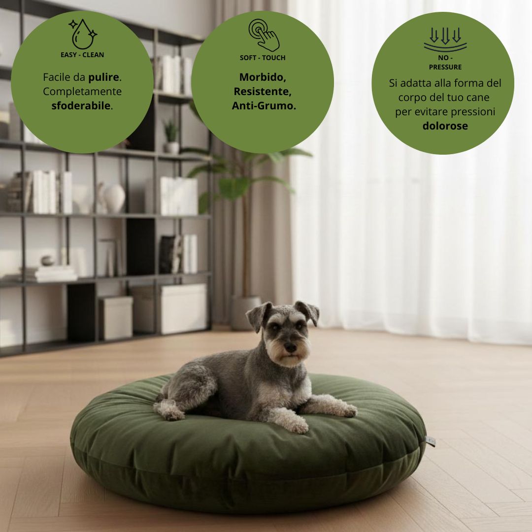 Cuscino per cani rotondo pillow Verde Oliva – Comfort, Relax e Benessere 🐾