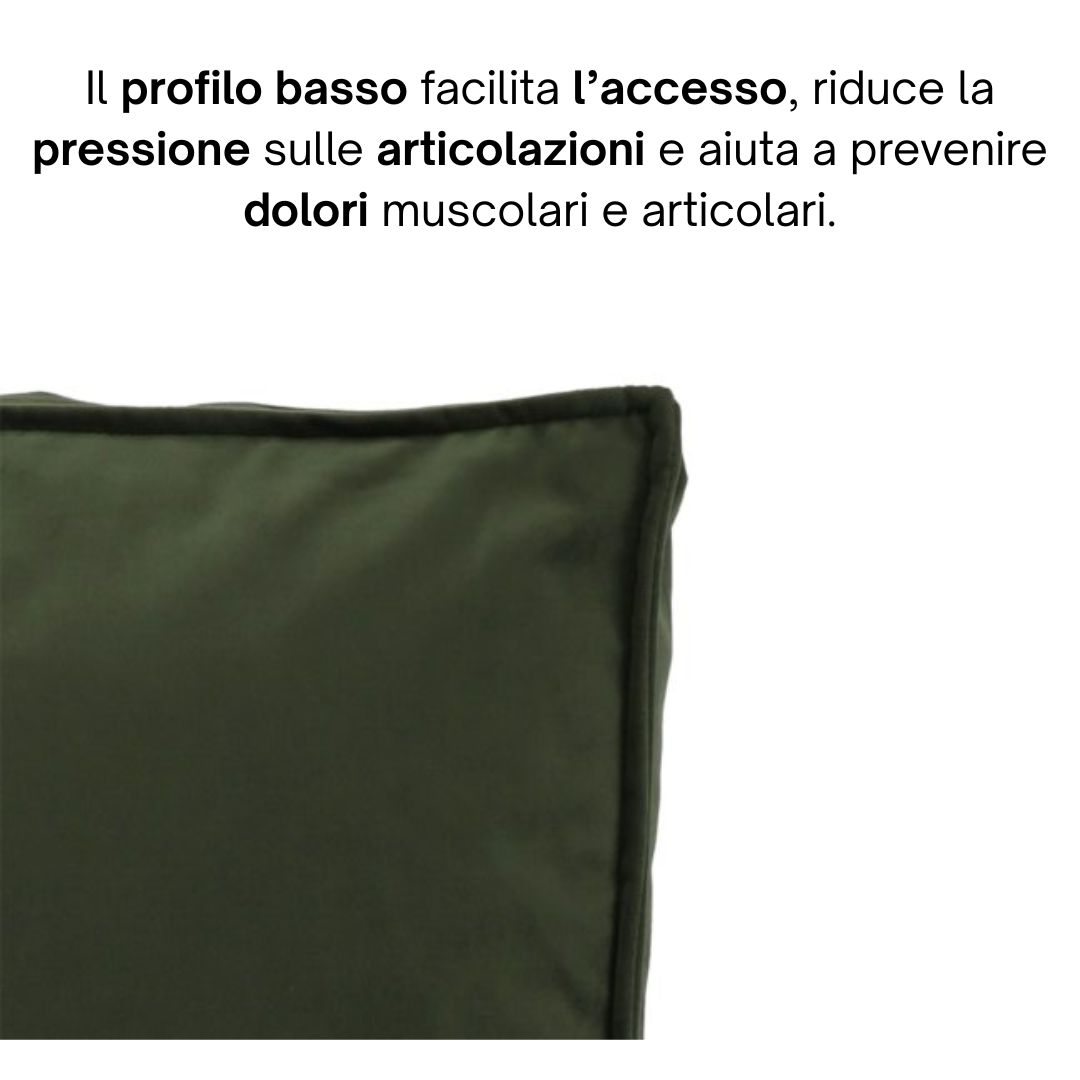 L’imbottitura distribuisce il peso in modo uniforme, aiutando a ridurre i punti di pressione su schiena, anche e articolazioni.