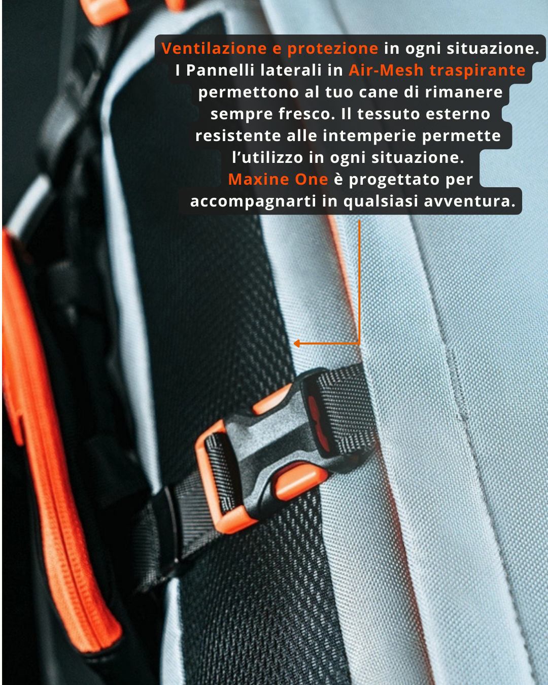 Maxine one è uno zaino ergonomico progettato per permetterti di portare il tuo cane ovunque in modo pratico e sicuro.